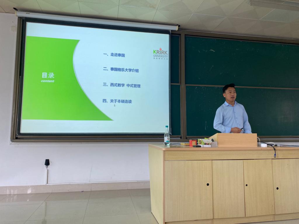 为了提前做好留学规划,帮助学生实现赴泰国格乐大学留学的美好梦想。4月24日,国际学院邀请泰国格乐大学驻福建办事处陈彦明主任召开以“泰国留学应知教育”为主题的出国留学专题讲座。国际学院副院长张志炼、格乐大学驻校工作人员、泰国项目2020级学生及家长共参加了此次讲座。讲座由泰国项目辅导员胡晓婷主持。