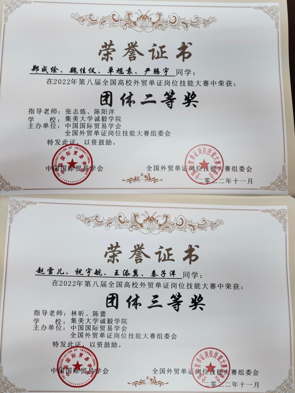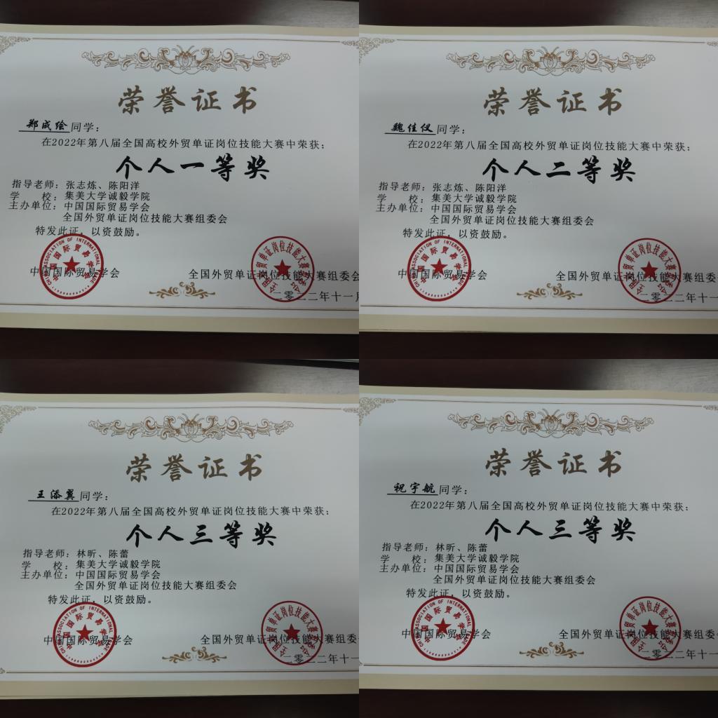 近日,第八届全国高校外贸单证岗位技能大赛比赛结果揭晓,国际学院学生代表队首次参赛就创出佳绩,斩获团体二等奖、团体三等奖、个人一等奖、个人二等奖、个人三等奖等奖项,取得了历史性突破。